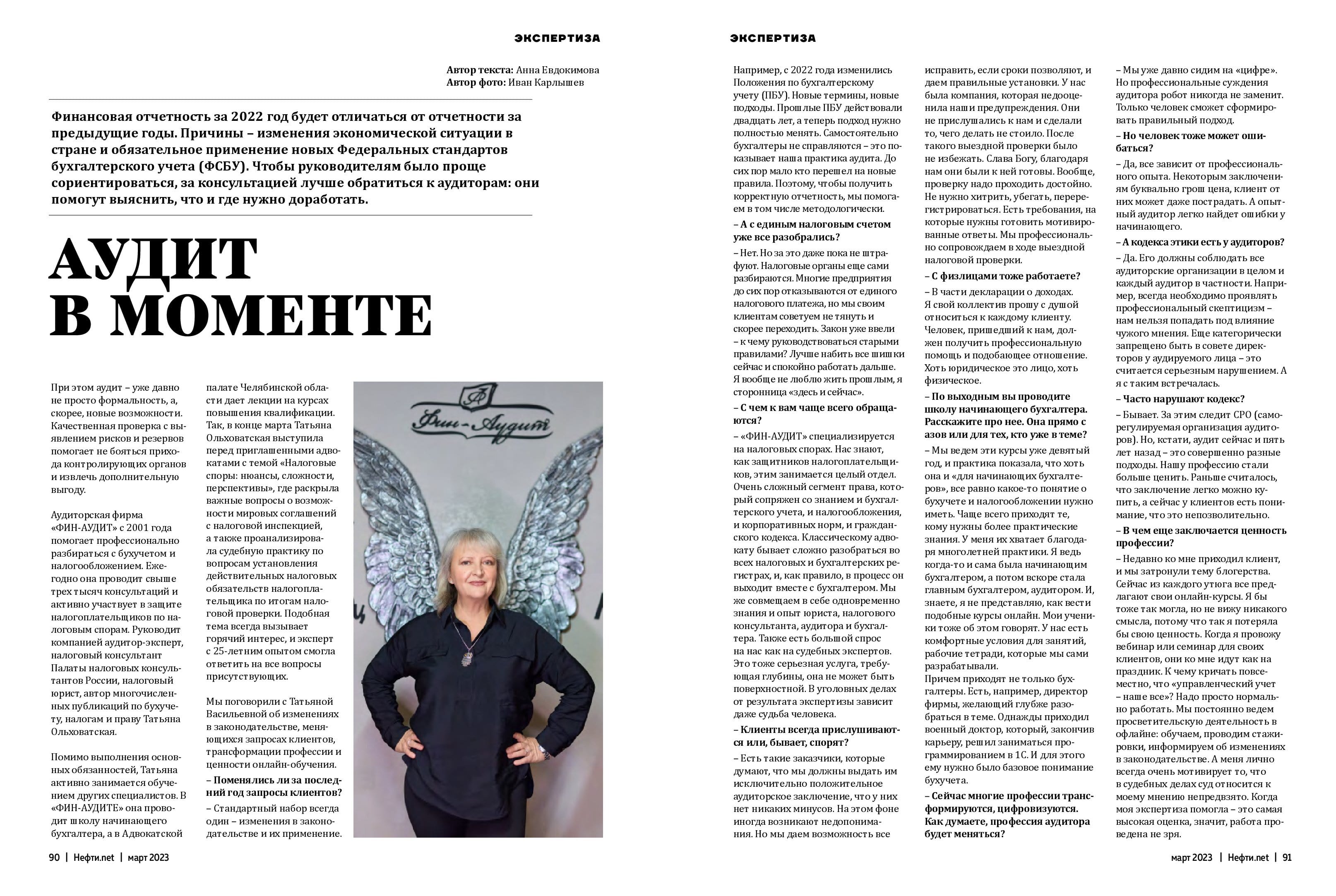 СТАТЬЯ "АУДИТ В МОМЕНТЕ". АВТОР: ОЛЬХОВАТСКАЯ ТАТЬЯНА ВАСИЛЬЕВНА. ЖУРНАЛ "НЕФТИ.NET" УРАЛ. АПРЕЛЬ 2023